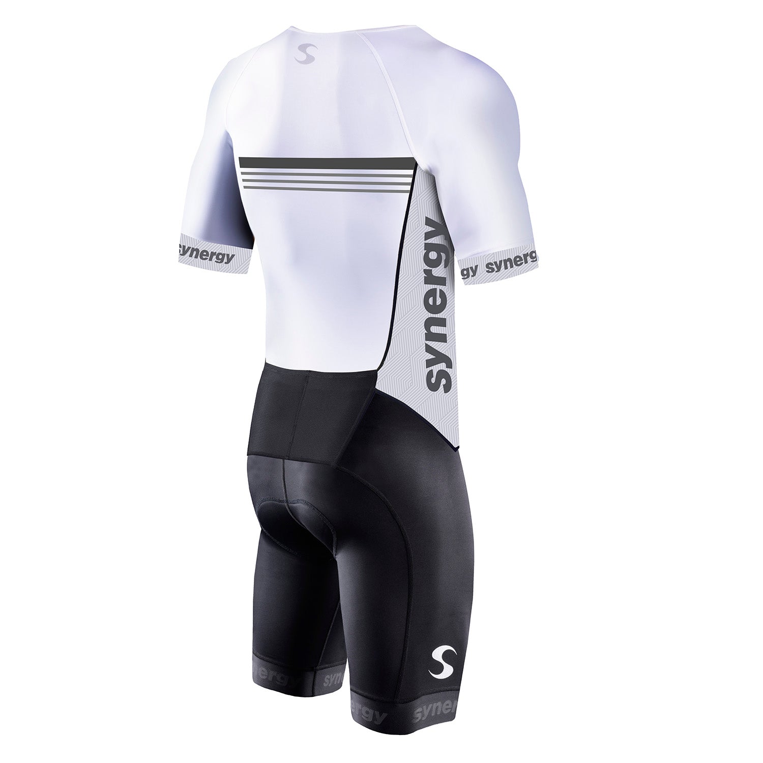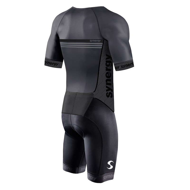 This suit does everything and goes anywhere. Repelling water for non-wetsuit swims while optimizing breathable performance for cycling and running, this is a one stop shop for the triathlete who wants to minimize transition time. Excellent for races and training alike. The Synergy Tri-Suit is our best selling model and for good reason. The suit is made from an aquaphobic nylon-spandex known for its comfort, breathability and compression qualities.